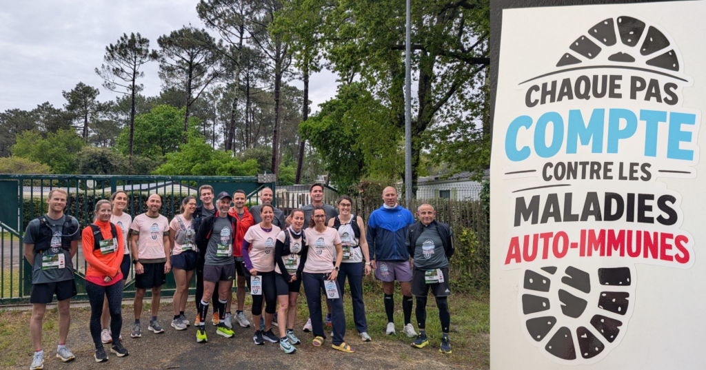 À l’occasion du semi-marathon de la presqu’île au Cap Ferret, des membres de se sont mobilisés aux côtés de patientes et patients autour d’un message commun : « Chaque pas compte contre les maladies auto-immunes » !