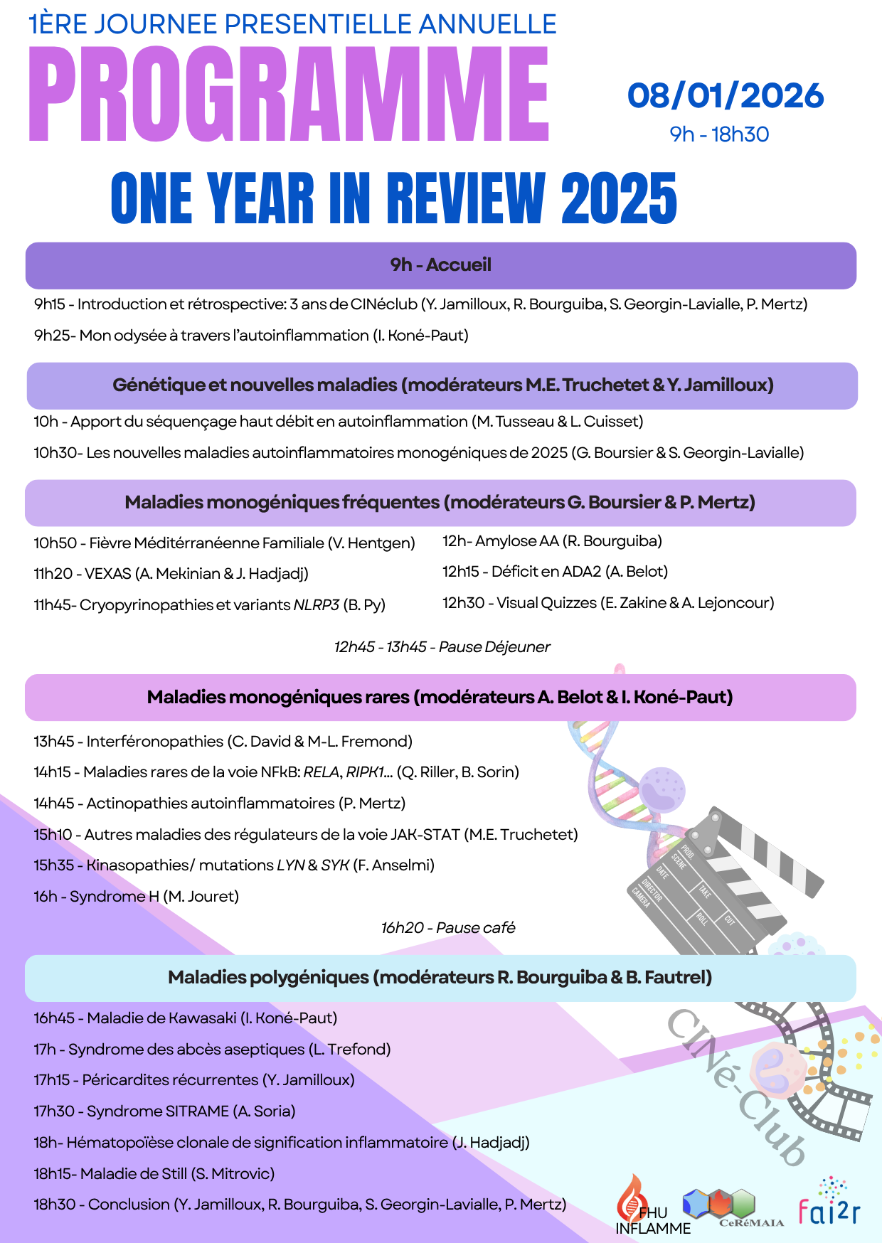 Le Pr Marie-Elise Truchetet, membre du centre de référence RESO Bordeaux, prendra part à la session consacrée à la génétique et aux nouvelles maladies. Elle y présentera une intervention sur le rôle des régulateurs de la voie JAK-STAT dans les maladies auto-inflammatoires, soulignant l’importance du séquençage haut débit et des approches génétiques modernes dans l’identification de nouvelles entités cliniques. La journée se conclura par une synthèse menée par les organisateurs, ouvrant la voie aux perspectives pour 2026.
